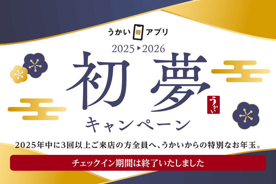うかいアプリ会員様限定で、期間中に対象店舗を3回以上ご利用いただいたお客様全員に、