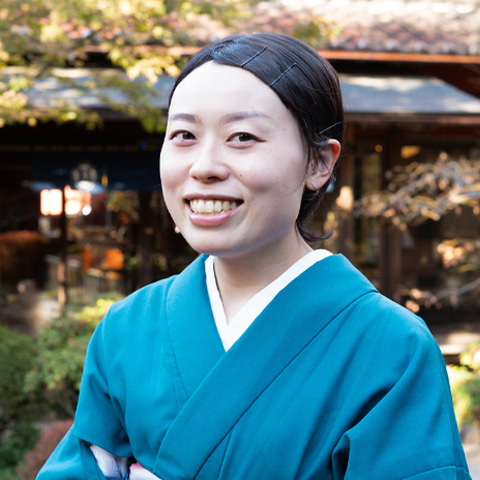 学生時代、自己分析をもとに恩師から紹介されたことが「うかい」との出合いでした。接客業は選択肢になかったのですが、会社説明会で感じた独特の温かい雰囲気に惹かれ入社を決意。敷居が高い世界だと不安もありましたが、実際の職場は和気あいあいとして助け合う環境で、最初の配属先の「うかい竹亭」(2024年11月閉店)には、言葉遣いや立ち居振る舞いが美しい先輩が多く、“自分もこうなりたい”と思える存在に恵まれました。