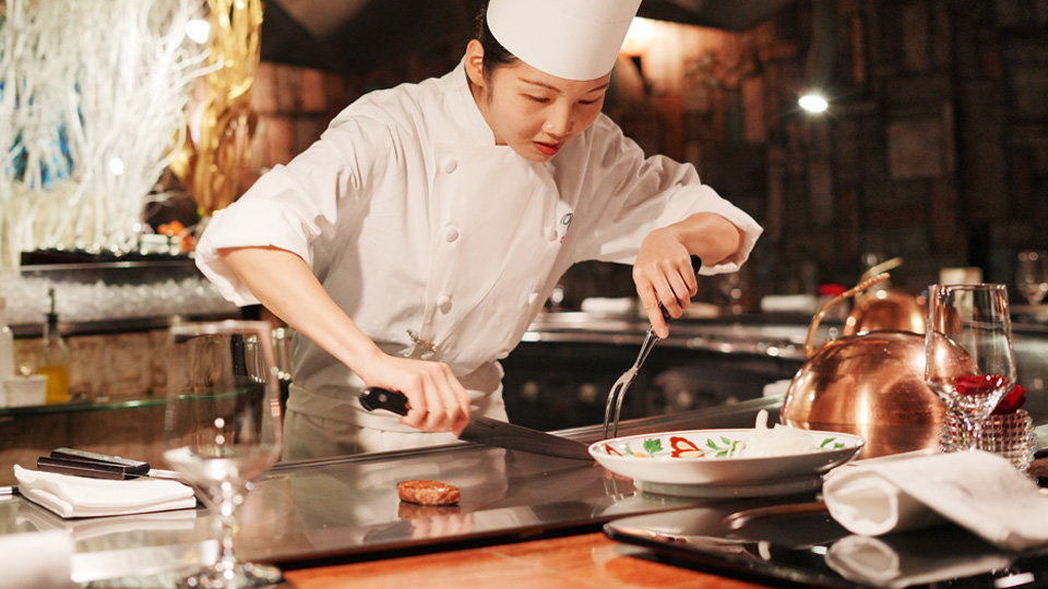 入社後は、仕込みやご飯の炊き方など地道な仕事が鉄板での一皿に直結することを、実際にお客様の前に立つようになって深く理解しました。厨房での調理経験を経て、今は主にディナーでの鉄板調理を担当していますが、お客様と会話しながら鉄板料理と向き合う時間に、大きなやりがいを感じています。
