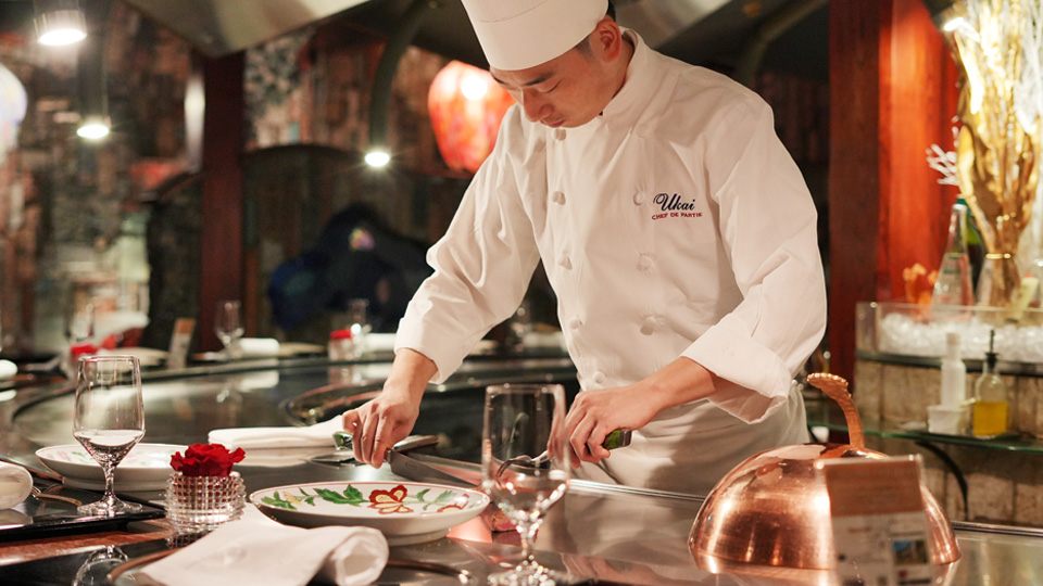 料理の道を志して専門学校に進学し、当初は厨房で働くことを考えていました。そんな中、お祝いの席で訪れた鉄板焼店で目の前で料理が仕上がる臨場感に心を奪われ、「自分もあの場所に立ちたい」と強く思いました。その店のシェフが“うかい出身”だったことが「うかい」で働くきっかけとなりました。