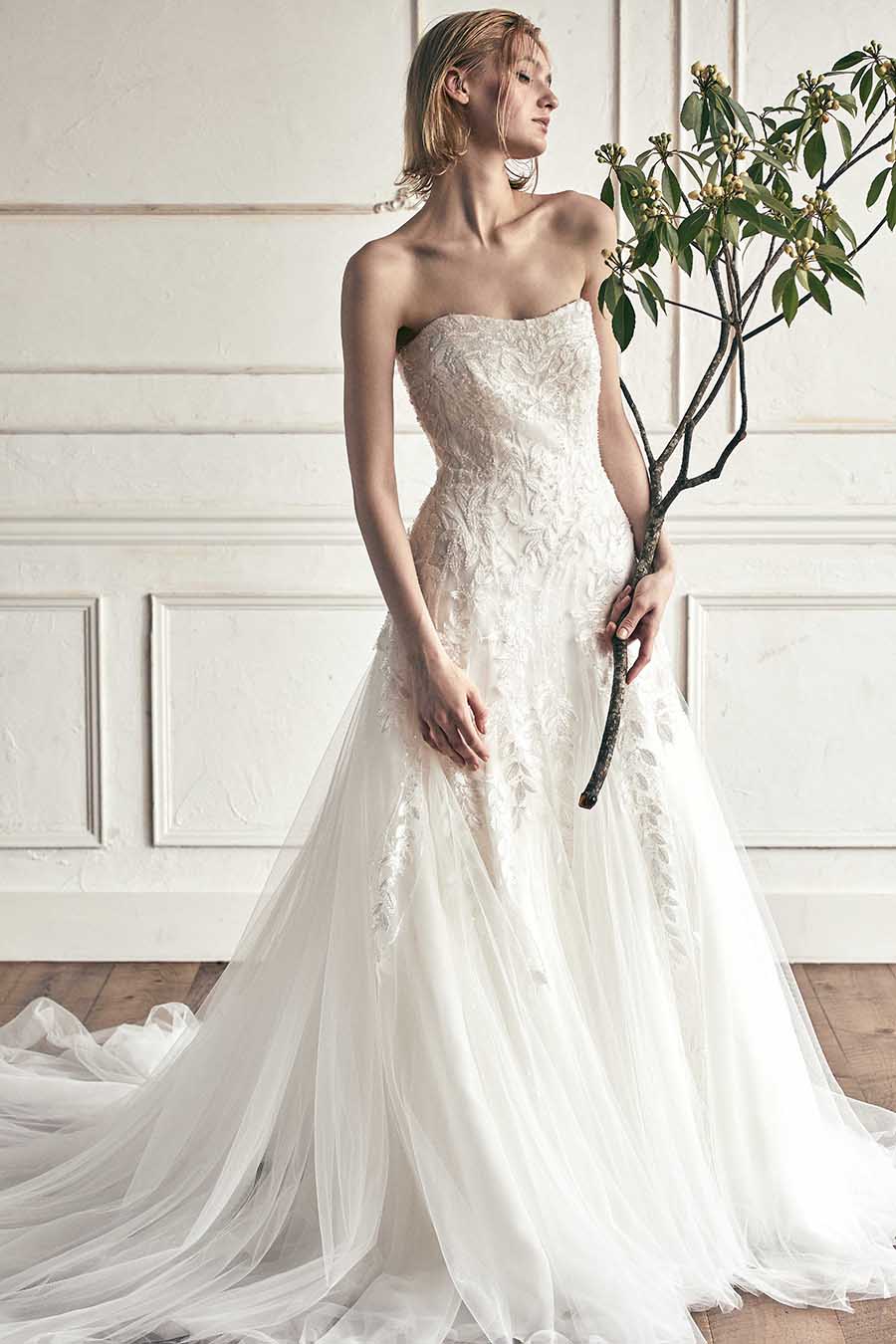 控えめな華やかさと繊細なディテールを持つドレスが、優しく溶け込みます。