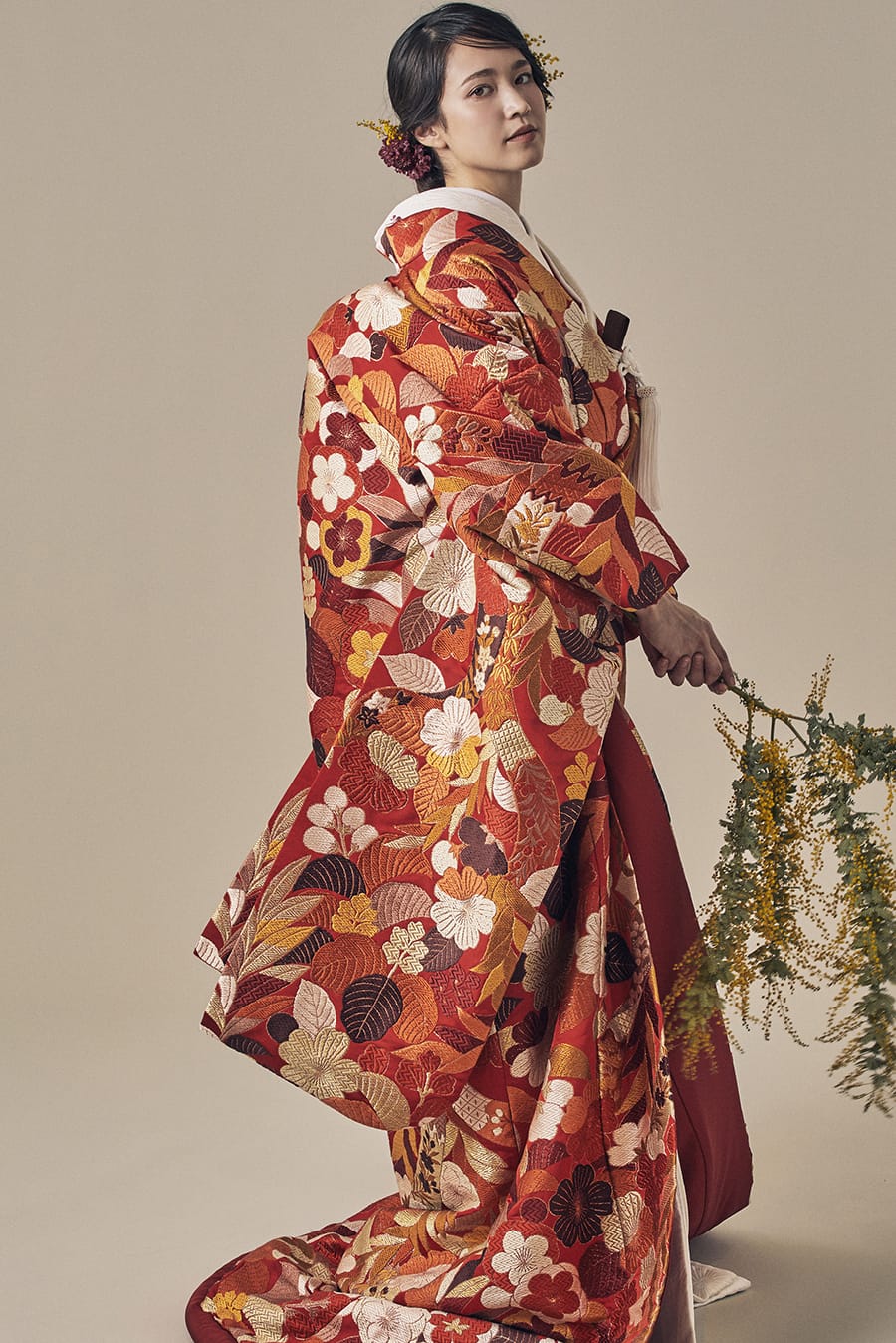 繊細な意匠と華やぎが際立つ豪華絢爛な色打掛は、